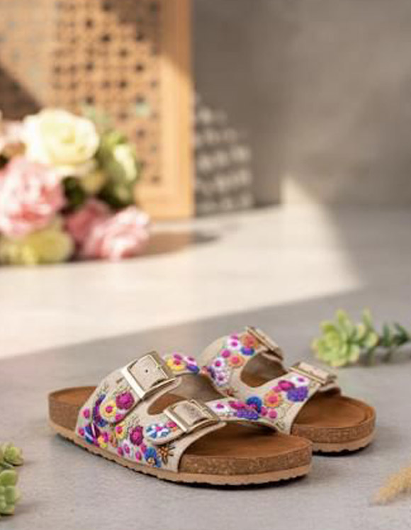 Bring style and ease together with the Blossom Comfort Sandals by Kiwi Toes. Featuring a chic double-strap design with adjustable buckles, these sandals are beautifully embroidered with multicolored floral patterns that add a refreshing touch to your everyday look. Crafted with a cushioned footbed and supportive sole, they provide all-day