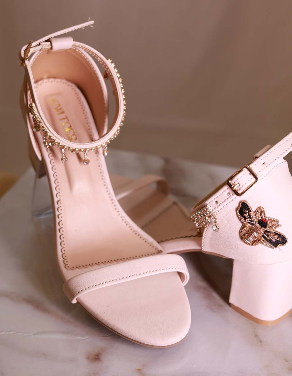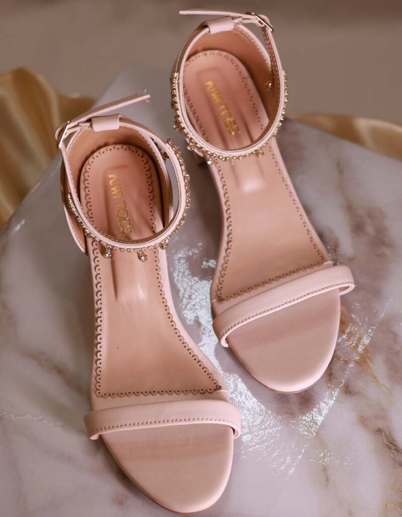 Step into elegance with the Jewelbug Block Heels by Kiwi Toes, designed for those who love subtle glamour with a modern edge. Crafted in a soft nude tone, these heels feature delicate ankle straps adorned with shimmering jewel chains and bead accents that add just the right touch of sparkle. The sturdy block heel offers height with comfort, making them perfect for parties, weddings, or evening outings.